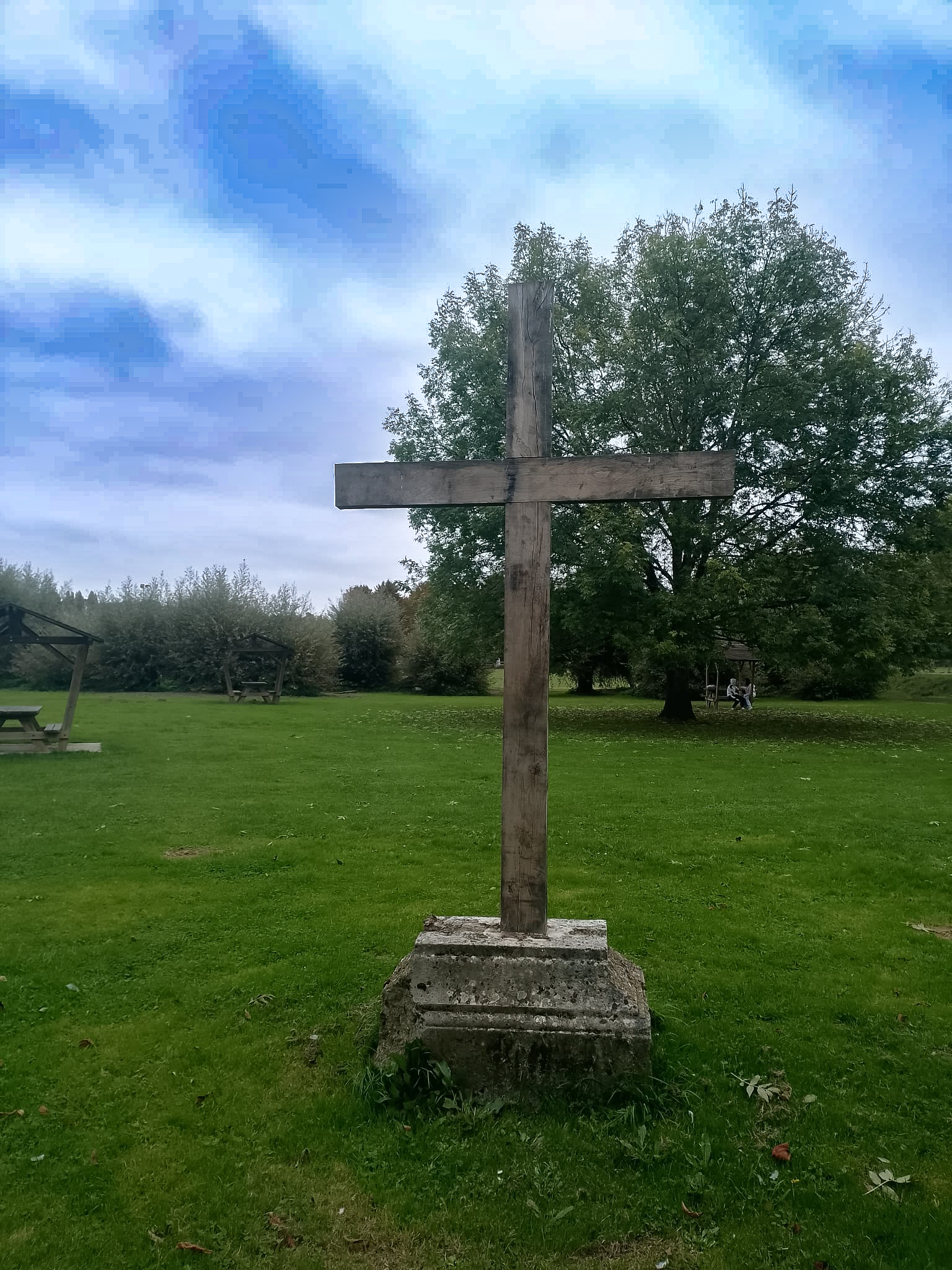 Le père Duhamel, alors curé de la paroisse Saint-Georges, souhaite que cet événement laisse une trace durable dans la commune. Il organise un grand rassemblement au Pré-Manche, avec une double intention : offrir un accueil chaleureux à ces jeunes visiteurs et remplacer l’ancienne croix en fer forgé, alors cassée, par une nouvelle croix en bois. Cette croix, grande et solide, a été construite avec du bois fourni par la scierie Roser. Elle est rapidement devenue un lieu de rassemblement pour la paroisse, où l’on venait régulièrement célébrer des messes en plein air.