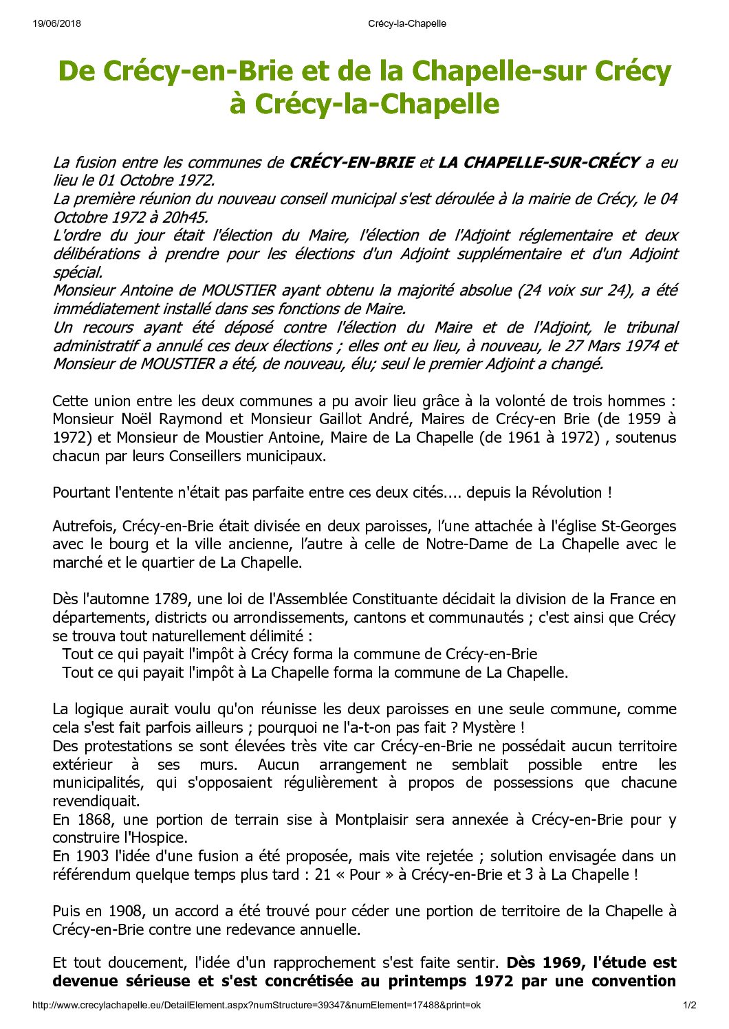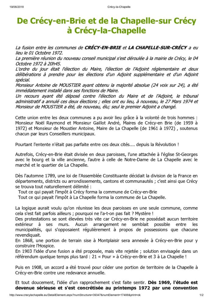 Site de la Ville de Crécy-la-Chapelle | DECOUVRIR LA VILLE | Présentation | Présentation | fusion communes