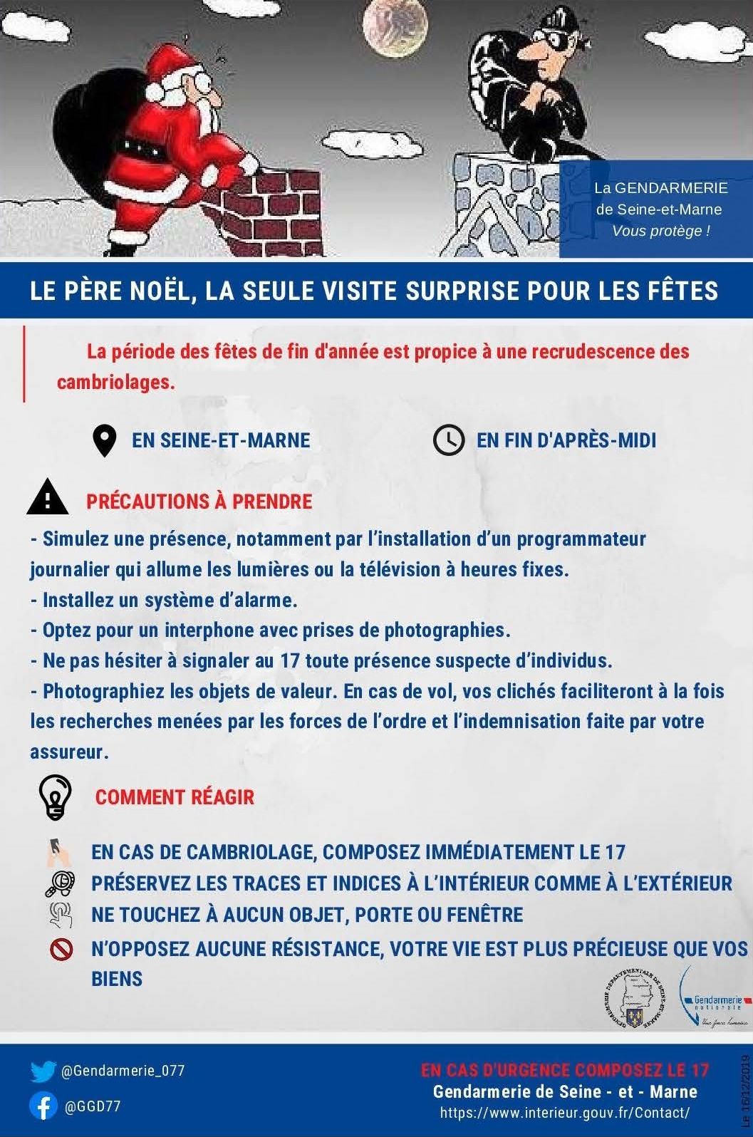 La période des fêtes de fin d’année est un moment privilégié pour se retrouver en famille, voyager, participer aux animations locales… mais elle constitue malheureusement aussi une période sensible en matière de cambriolages. En Seine-et-Marne, une recrudescence d’effractions est observée pendant les fêtes, particulièrement en fin d’après-midi.
